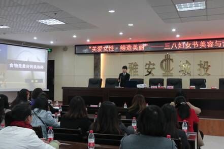 為慶!叭恕眹H勞動婦女節(jié),提高女性自我審美和保健水平,展示新時代女性積極向上的精神風(fēng)貌,3月8日上午,城投公司、雅投公司、煙草公司聯(lián)合舉辦三八國際勞動婦女節(jié)美容與營養(yǎng)講座,專題對食物營養(yǎng)素、水果蔬菜、酸奶三方面進(jìn)行細(xì)致講解。