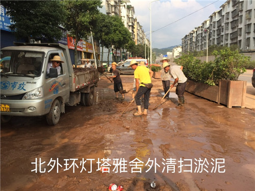 二是上下聯(lián)動(dòng),奮力除險(xiǎn),全力保障群眾安全。由于雨量過(guò)大,康藏路消防隊(duì)門(mén)口主干道積水達(dá)70厘米深,道路中斷,公司搶險(xiǎn)分隊(duì)組織隊(duì)員冒雨對(duì)排水口進(jìn)行疏通,以最快速度恢復(fù)道路通行;北外環(huán)青鼻山隧道外大量塌方,搶險(xiǎn)分隊(duì)立即在此處設(shè)置警示標(biāo)識(shí),并調(diào)配裝載機(jī)對(duì)塌方進(jìn)行清理,確保道路恢復(fù)正常通行。