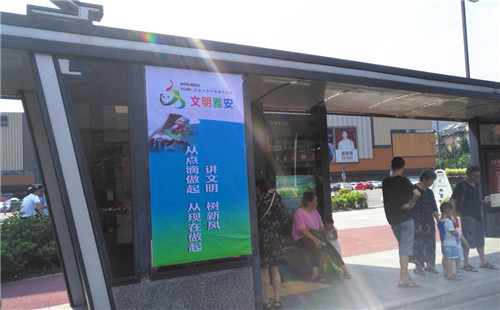 此次氛圍營造活動,城投公司在管轄范圍內(nèi)的20處公交車站臺制作了以“社會主義核心價值觀”“講文明樹新風”為主要內(nèi)容的宣傳展板,并利用公交車站臺LED顯示屏滾動播放相關標語。