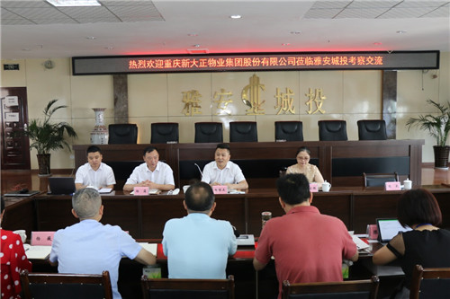 7月2日,重慶新大正物業(yè)集團(tuán)股份有限公司助理總裁田維正一行到城投公司考察交流。市國資委、保安公司、城投公司、國資公司、蜀天物業(yè)相關(guān)負(fù)責(zé)人參加座談。
