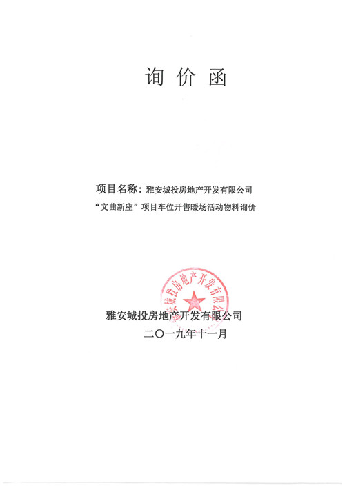 雅安城投房地產開發(fā)有限公司詢價函