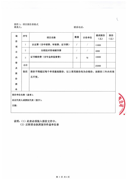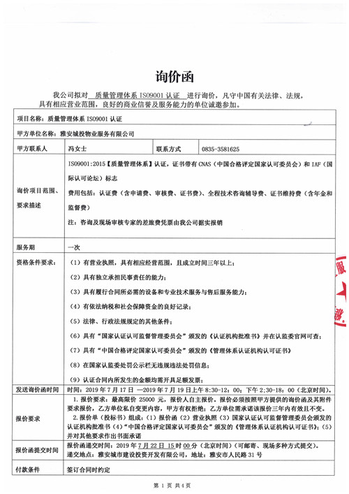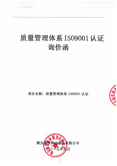 城投物業(yè)質量管理體系IS09001認證詢價函