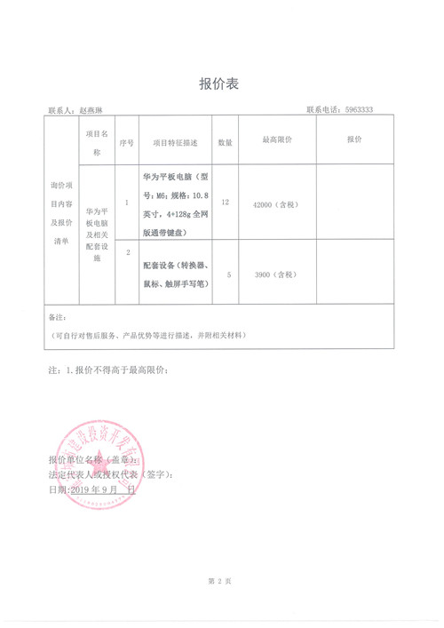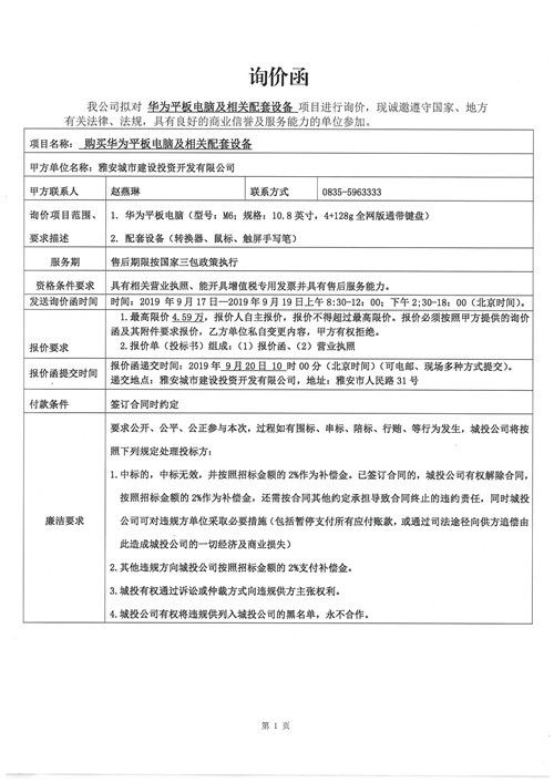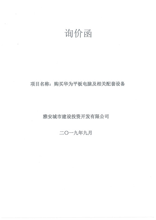 城投公司購(gòu)買(mǎi)華為平板電腦及相關(guān)配套設(shè)備詢價(jià)函