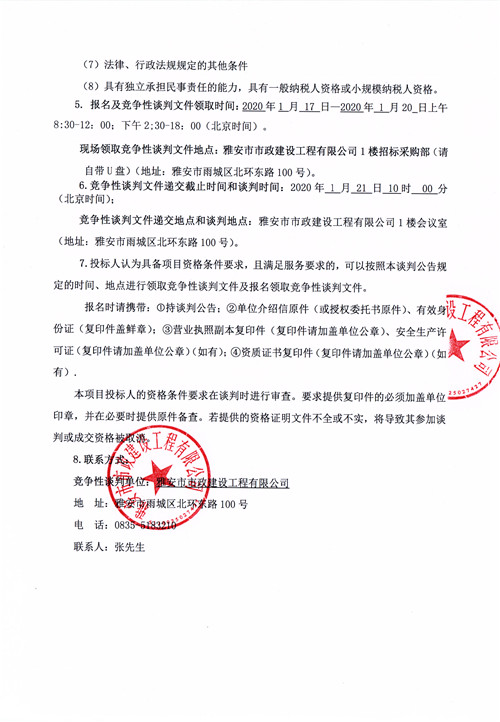 雅安市生活垃圾轉(zhuǎn)運(yùn)體系建設(shè)姚橋垃圾壓縮中轉(zhuǎn)站項(xiàng)目確定鋼筋供貨單位的競(jìng)爭(zhēng)性談判公告(第二次)