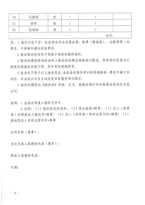 雅安城市建設(shè)投資開(kāi)發(fā)有限公司清潔用品詢價(jià)函