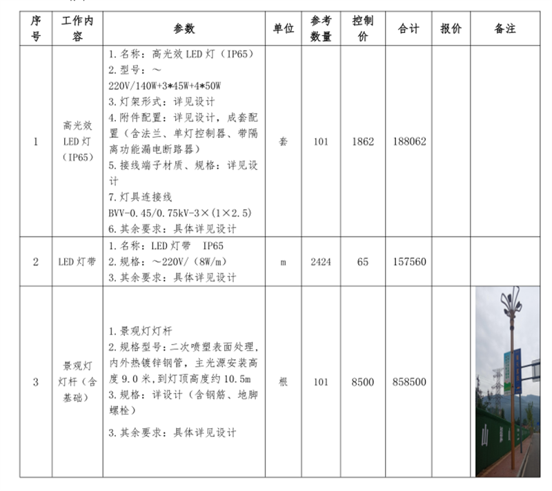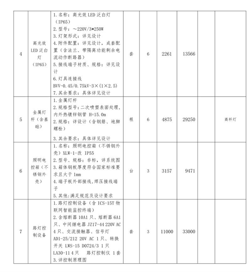 2.1項(xiàng)目?jī)?nèi)容:雅安文教新城市政道路恢復(fù)重建項(xiàng)目(一標(biāo)段)照明工程材料采購供貨商的確定,保障市政公司相關(guān)工程的順利進(jìn)行,具體貨物見材料清單(本招標(biāo)文件所附清單(數(shù)量、規(guī)格、種類)僅供參考,最終采購數(shù)量實(shí)際發(fā)生(分散采購)的為準(zhǔn))。