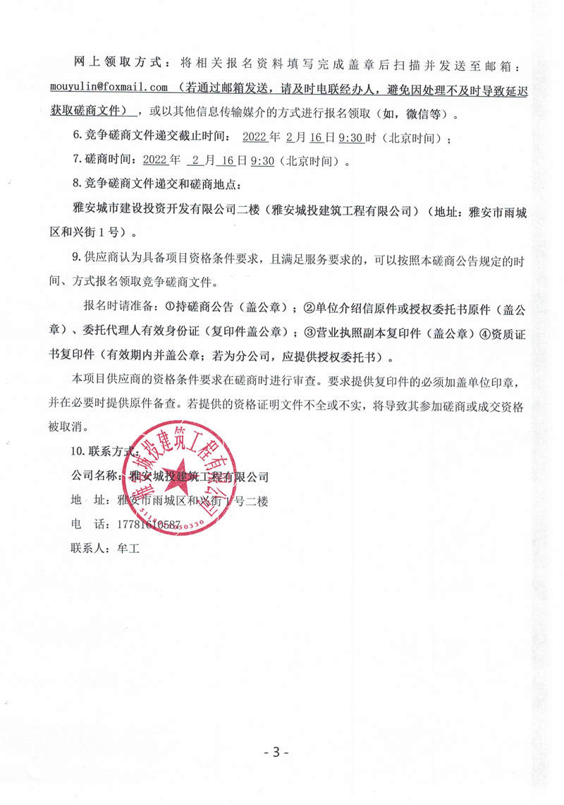 蒙頂壹號(hào)項(xiàng)目懸挑工字鋼采購(gòu)競(jìng)爭(zhēng)磋商公告(第二次)