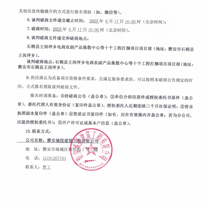 石棉縣王崗坪鄉(xiāng)電商農(nóng)副產(chǎn)品集散中心等十個工程打捆項目機械租賃談判磋商公告