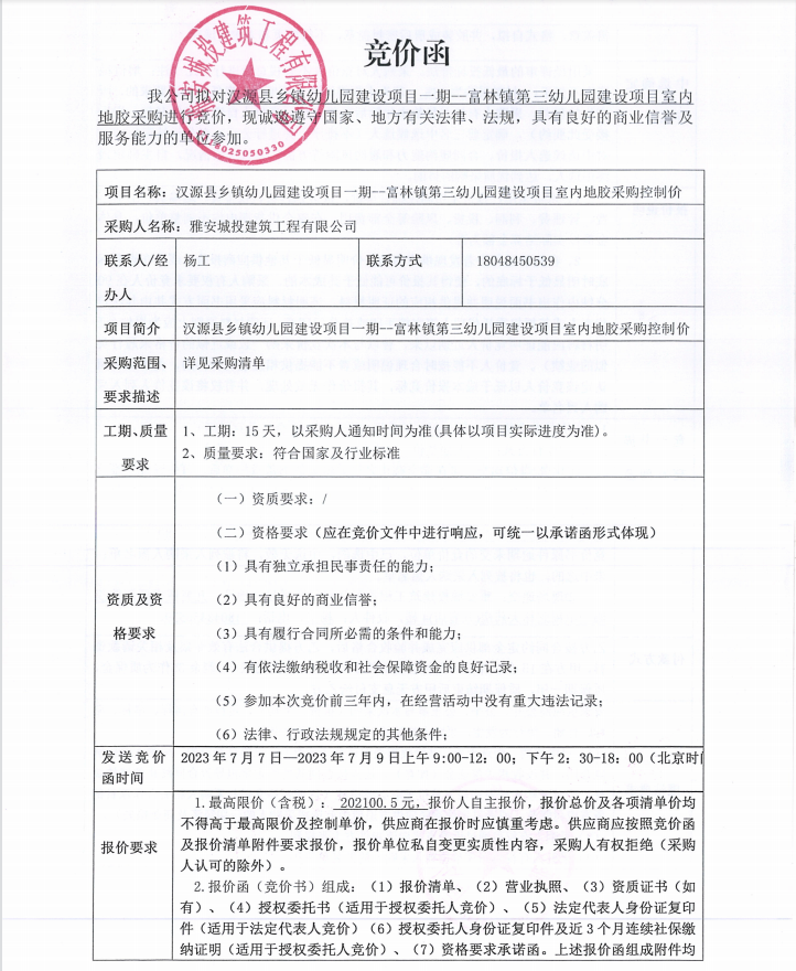 漢源縣鄉(xiāng)鎮(zhèn)幼兒園建設項目一期--富林鎮(zhèn)第三幼兒園建設項目室內(nèi)地膠采購競價公告