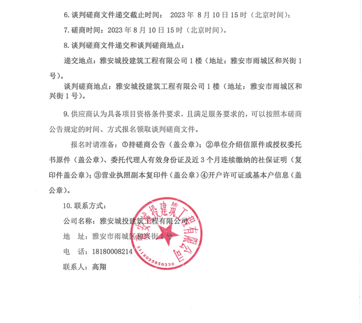 寶興縣靈關保障性租賃住房建設項目(二期)架管租賃談判磋商公告