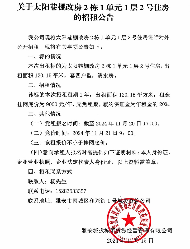 關(guān)于太陽(yáng)巷棚改房2棟1單元1層2號(hào)住房的招租公告