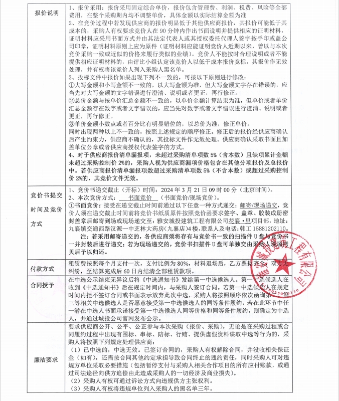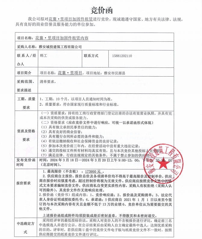 花襄·里項(xiàng)目加固件租賃競價(jià)公告