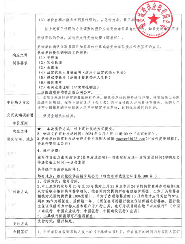 雅州壹號院項目蒸壓加氣混凝土砌塊采購(第二次)競價公告
