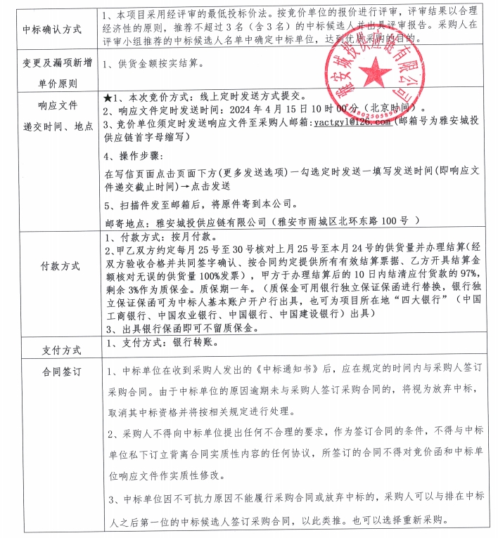 雅安城投供應(yīng)鏈有限公司電線電纜采購(gòu)競(jìng)價(jià)公告