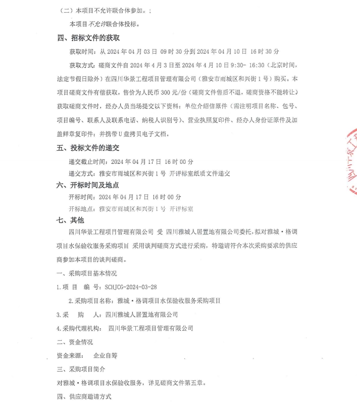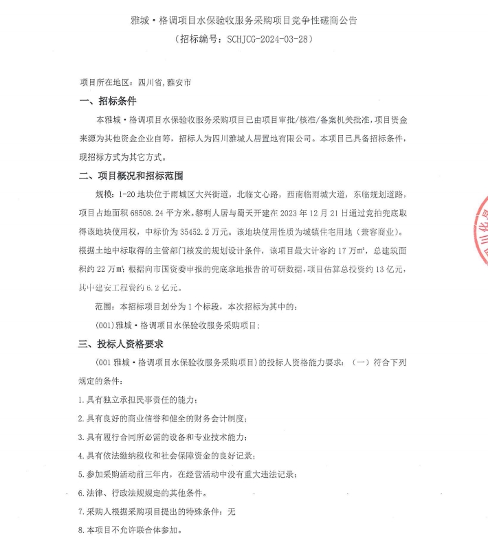 雅城·格調(diào)項(xiàng)目水保驗(yàn)收服務(wù)采購(gòu)項(xiàng)目競(jìng)爭(zhēng)性磋商公告