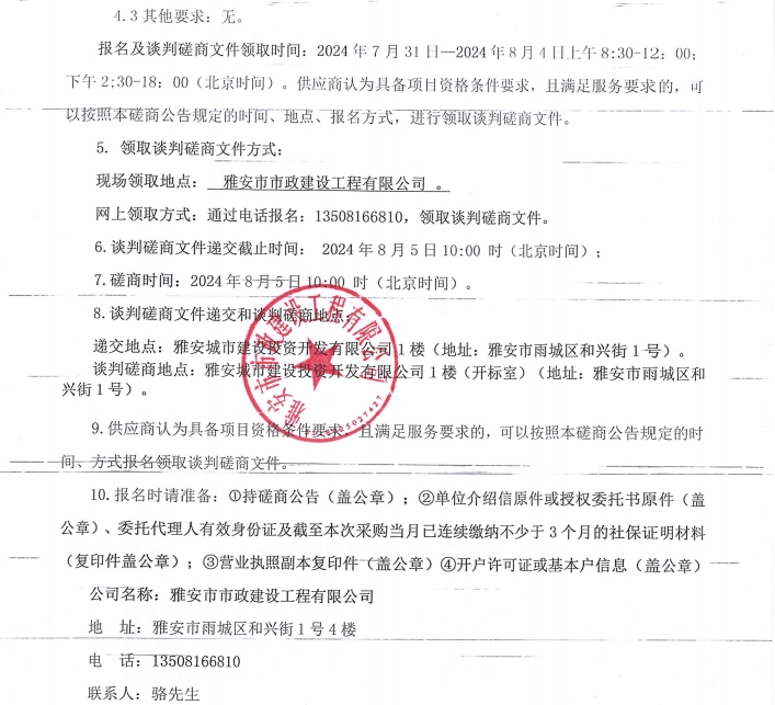 雅安市熊貓大道城市主干道改建項目路燈燈桿LED顯示屏(含安裝、智能化調(diào)試)磋商公告