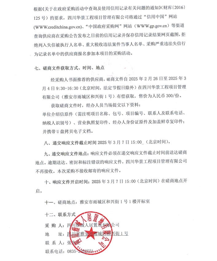雅州印項(xiàng)目前期物業(yè)服務(wù)公司采購項(xiàng)目磋商邀請(qǐng)