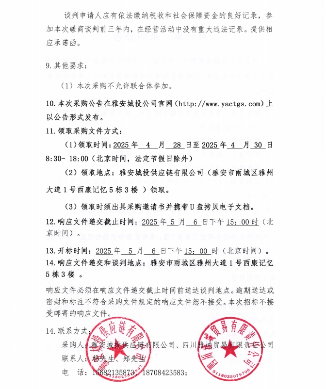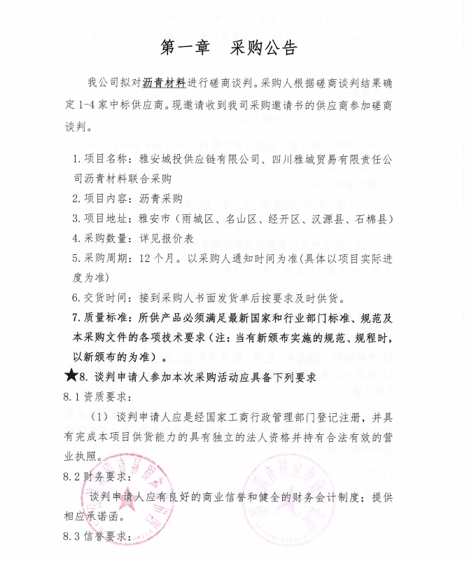 雅安城投供應(yīng)鏈有限公司、四川雅城貿(mào)易有限責(zé)任公司瀝青材料聯(lián)合采購(gòu)公告