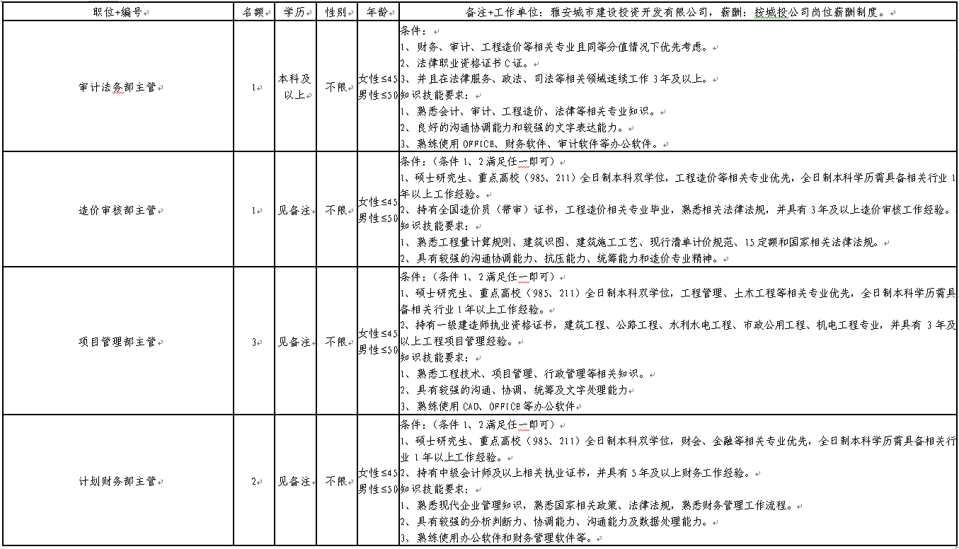 雅安城市建設(shè)投資開發(fā)有限公司招聘專業(yè)技術(shù)人才公告